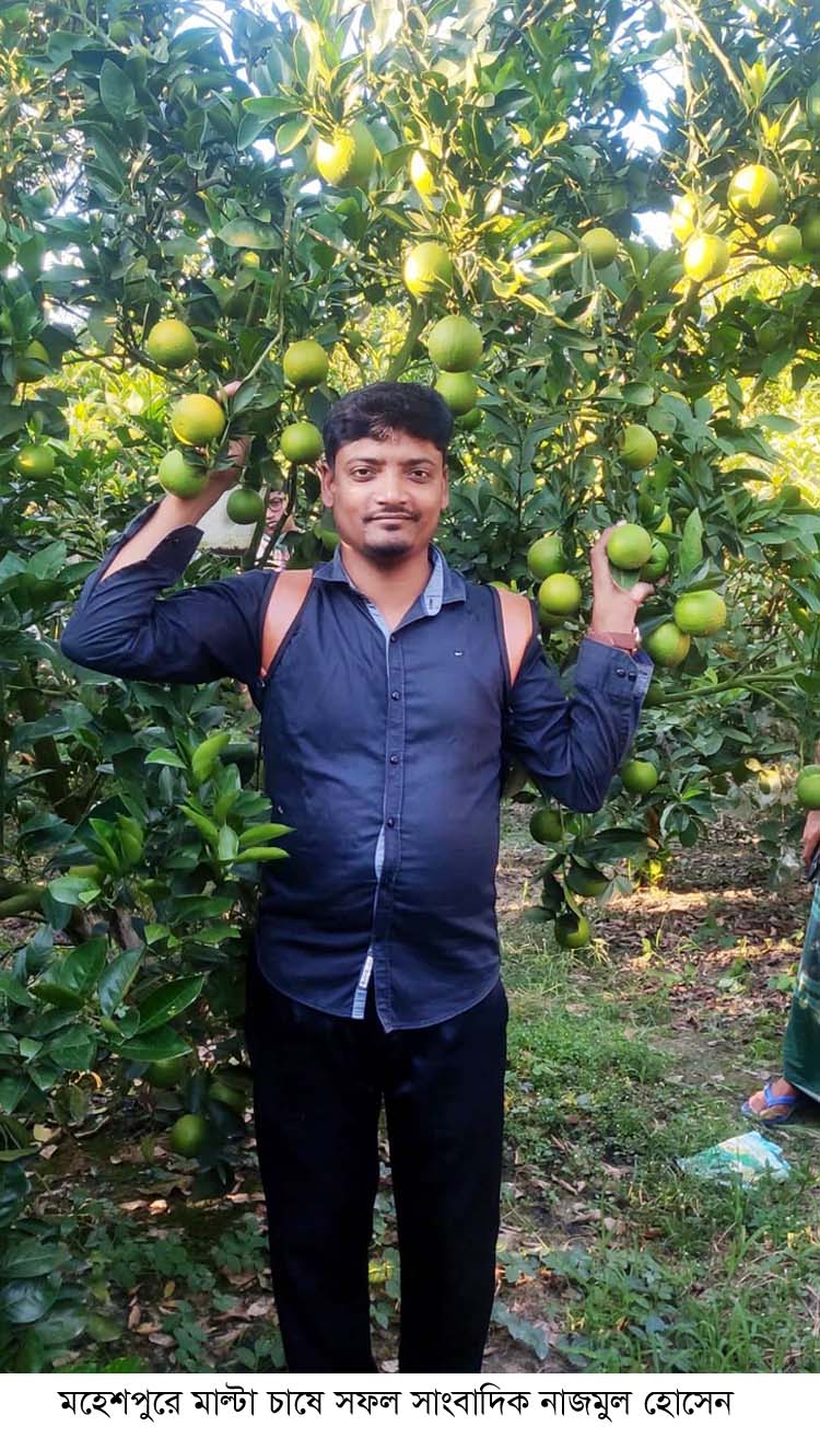 মাল্টার পাশাপাশি একই জমিতে চায়না লেবু, উন্নত জাতের পেয়ারা ও কুল চাষ করেছেন। মো. নাজমুল হোসেন মহেশপুর উপজেলার ভবনগর গ্রামের জামাত আলীর ছেলে।