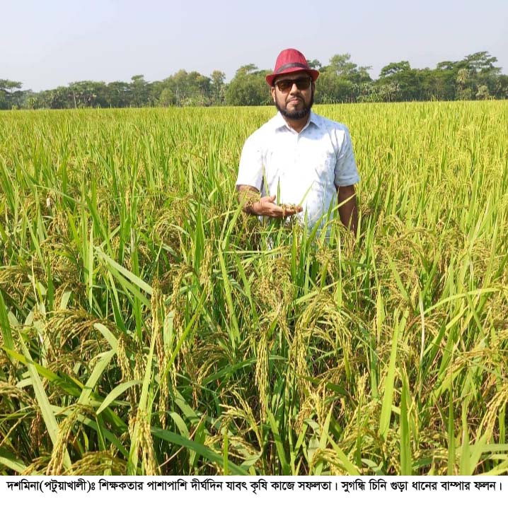 নাসির আহমেদ,দশমিনা (পটুয়াখালী) : পটুয়াখালীর দশমিনা উপজেলার ৭টি ইউনিয়নে সুগন্ধি চিনি গুড়া ধানের বাম্পার ফলন হওয়ায় কৃষকদের মাঝে খুশির আমেজ বিরাজ করছে। এর ফলে স্থানীয় কৃষকদের মধ্যে চাষাবাদে ব্যাপক আগ্রহ সৃষ্টি হয়েছে। উপজেলা কৃষি সম্প্রসারন অধিদপ্তরের পরামর্শে প্রধান শিক্ষক মো. আবদুর রহমান’র গ্রামের বাড়ি উপজেলা সদর ইউনিয়নের দক্ষিন পূর্ব দশমিনায় এবার এক একর জমিতে সুগন্ধি চিনি গুড়া, স্বর্ণ গোটা ধান ১.৫০ শতাংশ ও ভিত্তি তেইশ ৬একর মোট সাড়ে আট একর জমিতে ধানের আবাদ করে ব্যাপক সাড়া ফেলেছে।