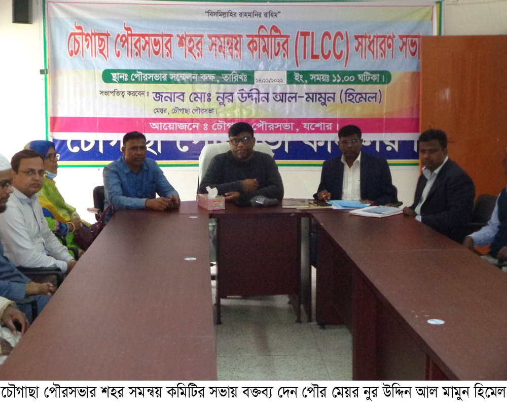 চৌগাছা (যশোর) প্রতিনিধি ॥ চৌগাছা পৌরসভার শহর সমন্বয় কমিটির সাধারণ সভা অনুষ্টিত হয়েছে। সোমবার সকালে পৌরসভার হলরুমে এই সভা অনুষ্ঠিত হয়। পৌর মেয়র নুর উদ্দিন আল মামুন হিমেলের সভাপতিত্ব ও পৌর নির্বাহী কর্মকর্তা গাজী আবুল কাশেমের সঞ্চালনায় সভায় আলোচনা করেন প্যানেল মেয়র আনিছুর রহমান, সহকারী প্রকৌশলী রুহুল আমিন প্রমুখ। এসময় পৌরসভার সকল ওয়ার্ডের কাউন্সিলর ও শহর সমন্বয় কমিটির নেতৃবৃন্দ উপস্থিত ছিলেন।