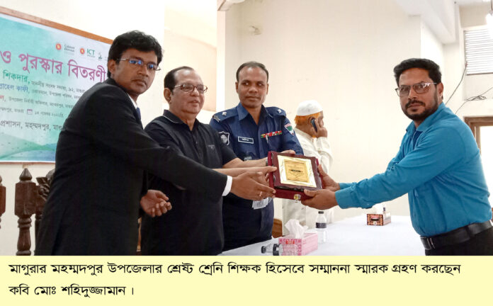 মুরাদ হোসেন, মহম্মদপুর (মাগুরা) থেকে : জাতীয় শিক্ষা সপ্তাহ-২০২২ এর মাধ্যমিক পর্যায়ে মাগুরার মহম্মদপুর উপজেলার শ্রেষ্ট শ্রেনি শিক্ষক নির্বাচিত হয়েছেন পলাশবাড়ীয়া মাধ্যমিক বিদ্যালয়ের সহকারী প্রধান শিক্ষক কবি মোঃ শহিদুজ্জামান।