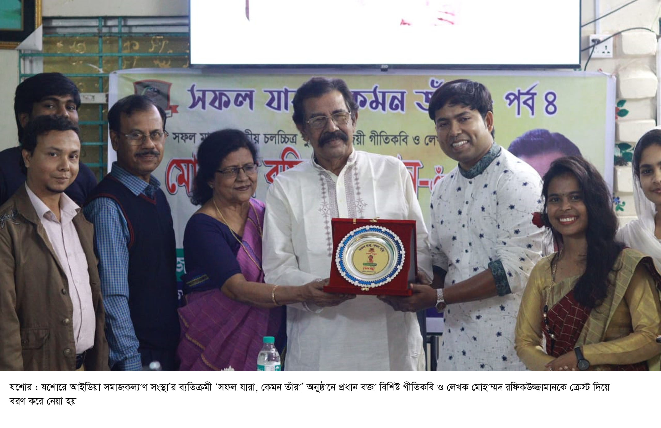 মঙ্গলবার রাতে যশোরে আইডিয়া সমাজকল্যাণ সংস্থা’র ব্যতিক্রমী ‘সফল যারা, কেমন তাঁরা’ অনুষ্ঠানে প্রধান বক্তা হিসেবে আমন্ত্রিত ছিলেন বিশিষ্ট গীতিকবি ও লেখক মোহাম্মদ রফিকউজ্জামান। শৈশব, কৈশোর, শিক্ষা জীবন, কর্মজীবন নিয়ে তিন ঘণ্টা গল্প শোনান তিনি। যুগ যুগ ধরে সমাদৃত অনেক গানের জন্ম ইতিহাস, সিনেমা নির্মাণের প্রেক্ষাপট, পেছনের গল্প তুলে ধরেন। শিহরণ জাগানিয়া সেইসব গল্পে আপ্লুত হন শিক্ষার্থীরা।