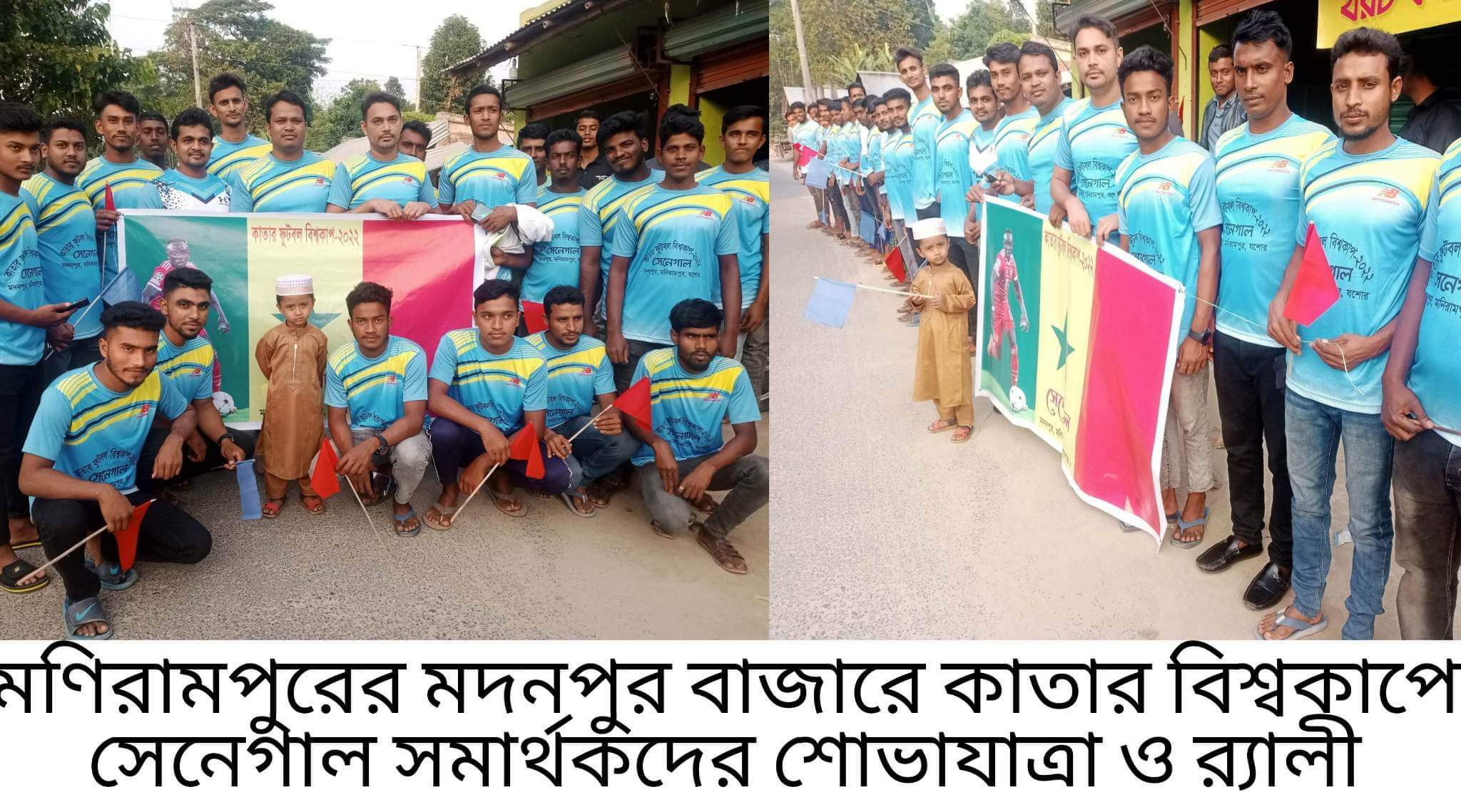 আনিছুর রহমান:- যশোরের মণিরামপুর উপজেলার হরিহরনগর ইউনিয়নের মদনপুর গ্রামের ফুটবল খেলোয়াড় ও ফুটবল প্রেমিক শতাধিক যুবক এবারের (২০২২) বিশ্বকাপে সেনেগাল খেলোয়াড়দের মনে প্রানে ভালোবেসে সমার্থন করেছেন। খেলায় দক্ষতা, কলাকৌশল দেখেই তারা দলটিকে ভক্তি ও সমার্থন করেছেন। শুধু এই নয়, শতভাগ মুসলিম ধর্মভীরু দেশটি যেমন এবারের বিশ্বকাপে স্থান করে নিয়েছে তেমনি আমাদের মনও যেন কেড়ে নিয়েছে। সব বিচার বিবেচনায় আমরা সেনেগালের সমার্থন করেছি বলে দাবী তাদের। এদিকে সেনেগালের সমার্থনকারীরা দলটি উৎসাহ দিতে দলের জার্সি পরিহিত ও পতাকা নিয়ে শুক্রবার বিকেলে মদনপুর বাজারে একটি বর্ণাঢ্য র্যালী ও আনন্দ উল্লাস করেছে। এদিকে কেন সেলেগালের সমার্থন করলেন, এমন প্রশ্নের জবাবে সমার্থনকারী ও ফুটবল প্রেমিক মদনপুর বাজারের জোনাকির আলো সমবায় সমিতির নির্বাহী পরিচালক জহিরুল ইসলাম তোতা বলেন, আমি সহ সমার্থকরা বিগত ২০১৪, ২০১৮ বিশ্বকাপ খেলা দেখেছি। সেলেগাল দলের খেলার ধরণ কলাকৌশল দেখে আমরা সন্তষ্টি হয়ে (২০২২) এর্বরের বিশ্বকাপে দলটিকে সমার্থন করেছি। এ ছাড়া সেনেগাল এর প্লেয়াররা অধিক পরিশ্রমী, প্রতিটি প্লেয়ারের নিজস্ব একটি করে ধর্মীয় প্রতিষ্ঠান মাদ্রাসা রয়েছে,। আশ্চার্য্য জনক হলেও সত্য যে সেনেগাল দলের প্লেয়াররা কাতার বিশ্বকাপে আশার সময় সকল প্লেয়ার পাঞ্জাবী পাজামা পরিহিত হয়ে ইসলামী বেশে এসেছে। তাই সব দিক দিয়ে বিবেচনায় আমরা মদনপুরের ফুটবল প্রেমিক খেলোয়াড়সহ স্থানীয় শতাধিক যুবক সেনেগালকে সমার্থন করেছি। আমরা দলটি উৎসাহী করতে ও বিশ্বকাপ বিজয়ের লক্ষে সেনেগালের পতাকা নিয়ে জার্সি পরিহিত হয়ে বাজারের বিভিন্ সড়কে আনন্দ র্যালী দিয়েছে সমার্থকরা।