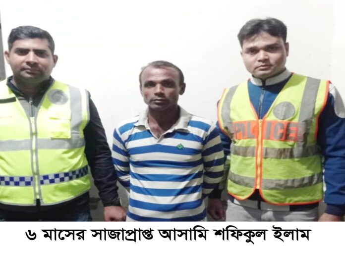 এইচ এম জুয়েল রানা স্টাফ রিপোর্টারঃ ছয় মাসের সাজার ভয়ে পরিবার পরিজন ছেড়ে দীর্ঘ ১৫ মাস পালিয়ে থেকেও শেষ রা হলো না। অবশেষে ধরা পড়লেন সাজাপ্রাপ্ত আসামি শফিকুল ইলাম(৩৭)। বৃহস্পতিবার রাতে যশোরের মণিরামপুর উপজেলার উত্তর লাউড়ী থেকে তাকে গ্রেপ্তার করেন পুলিশ। শুক্রবার সকালে তাকে জেল হাজতে পাঠানো হয়েছে।