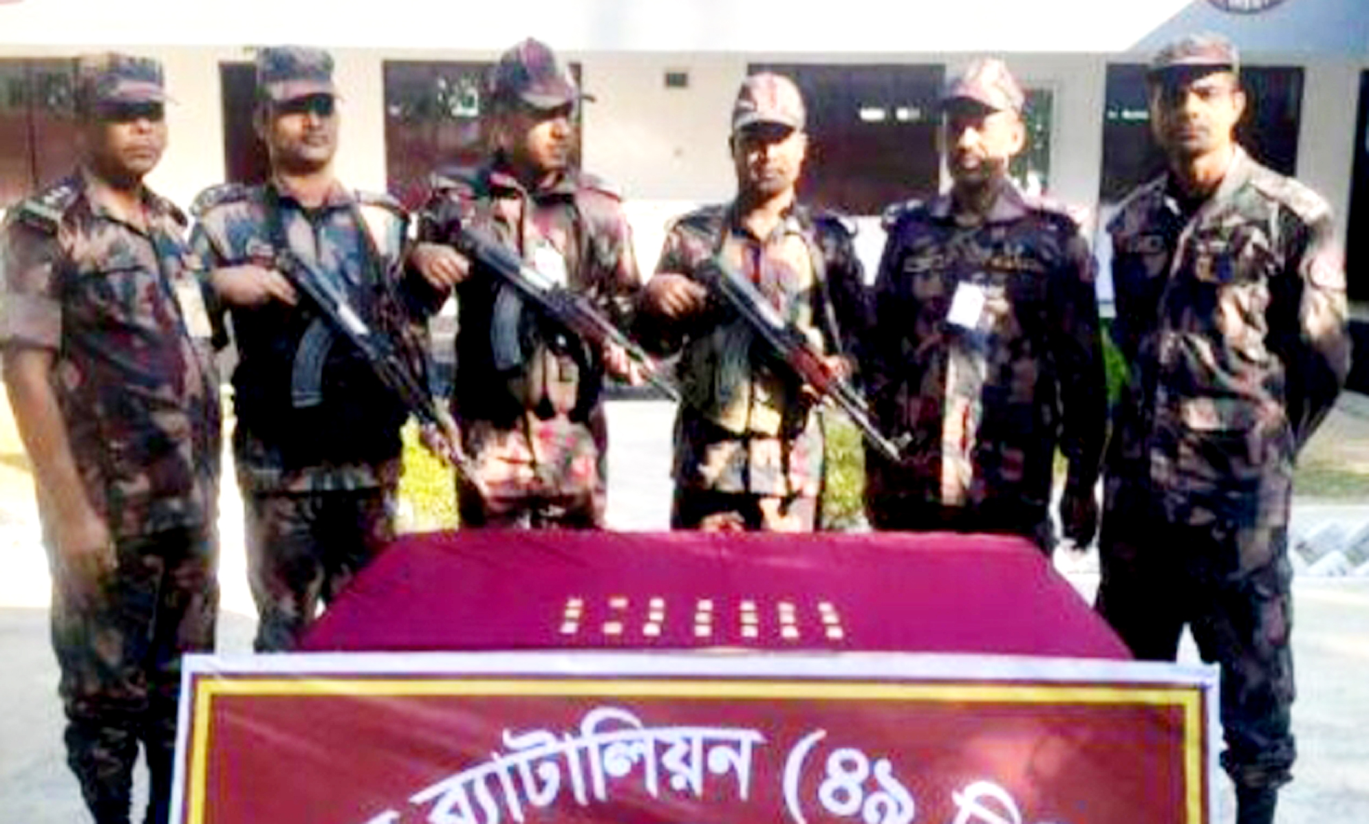 যশোর ব্যাটালিয়ন (৪৯ বিজিবি) এর অধিনায়ক, লেঃ কর্ণেল শাহেদ মিনহাজ ছিদ্দিকী জানান, মোঃ শরিফুল ইসলাম এর নেতৃত্বে গোপন সংবাদের ভিত্তিতে শার্শা উপজেলার নারকেল বাড়িয়া গ্রামস্থ সীমান্ত এলাকায় একটি বিশেষ অভিযান পরিচালনা করা হয়। উক্ত অভিযান পরিচালনাকালে মেইন পিলার ২৯/০২-এস হতে আনুমানিক ৪০০ গজ বাংলাদেশের অভ্যন্তরে শার্শা থানাধীন নারকেল বাড়িয়া গ্রামস্থ কালু মিয়ার আম বাগানের মধ্য দিয়ে সাদা শার্ট পরিহিত একজন ব্যক্তি গোলাপী রঙের ব্যাগ হাতে ভারত সীমান্তের দিকে গমন করছে। উক্ত ব্যক্তির চলাচল সন্দেহজন হওয়ায় টহলদল তাকে চ্যালেঞ্জ করলে হাতে থাকা ব্যাগ সরিষা ক্ষেতের মধ্যে ফেলে ভারতের দিকে দৌড়ে পালিয়ে যায়। পরবর্তীতে উক্ত স্থানে কর্মরত কৃষকের সহায়তায় সরিষা ক্ষেত তল্লাশী করে ব্যাগের মধ্য হতে ২০টি স্বর্ণের বার উদ্ধার করা হয়। যার ওজন ২.৩৩০ কেজি। উক্ত স্বর্ণের বর্তমান মূল্য ২,১৭,৮৫,৫০০/- (দুই কোটি সতের লক্ষ পঁচাশি হাজার পাঁচশত) টাকা।