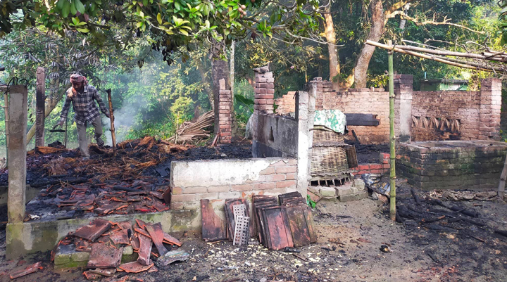 ঝিকরগাছা (যশোর) প্রতিনিধিঃ যশোরের ঝিকরগাছার পল্লীতে স্কুল শিক্ষকের গাভী-বাছুরসহ দুটি গরু অগ্নিদগ্ধ হয়েছে। আগুনে ওই কৃষকের রান্নাঘর ও গোয়াল পুড়ে ছাঁই হয়ে গেছে। দগ্ধ গাভী-বাছুরের অবস্থা আশংকাজনক। বৈদ্যুতিক শর্টসার্কিট থেকে অগ্নিকান্ডের এই ঘটনাটি ঘটে মঙ্গলবার গভীর রাতে উপজেলার সদর ইউনিয়নের কাশিপুর গ্রামে। জানাগেছে, অবসরপ্রাপ্ত স্কুল শিক্ষক মোঃ সাজ্জাদ হোসেনসহ পরিবারের সদস্যরা রাতের খাওয়া শেষে ঘুমিয়ে পড়েন। গৃহকর্তার ধারণা বৈদ্যুতিক শর্টসার্কিট থেকে প্রথমে বাঁশ-খুঁটির টিন-টালির চালের রান্নাঘরে এই আগুনের সূত্রপাত হয়। একপর্যায়ে তা দ্রুত ছড়িয়ে পড়ে পাশের গোয়াল ঘরে। ফলে, মূহুর্ত্যরে মধ্যে আগুনের লেলিহানশীখা গোয়াল ঘরে ছড়িয়ে পড়ে সম্পূর্ণ ভস্মিভূত হয় গোয়াল ও রান্নাঘর। অগ্নিকান্ডের ঘটনায় ২লক্ষাধিক টাকার ক্ষয়ক্ষতি হয়েছে বলে দাবি করেন ওই স্কুল শিক্ষক। গৃহকর্তা স্কুল শিক্ষক মোঃ সাজ্জাদ হোসেনের ছেলে শফিকুল ইসলাম অভিযোগ করেন, অগ্নিকান্ডের সাথে সাথে টের পেয়ে তারা কয়েকবার স্থানীয় ফায়ার সার্ভিস ও সিভিল ডিফেন্স অফিসের টেলিফোন নাম্বারে ফোন করলেও তা রিসিভ করেনি।