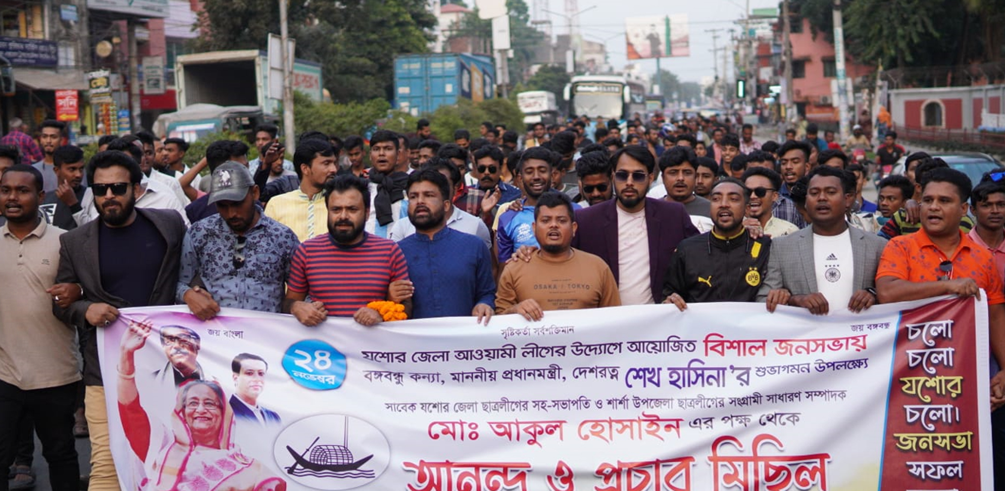 এ সময় যশোরে প্রধাণমন্ত্রী শেখ হাসিনাকে স্বাগত জানিয়ে ও ২৪ নভেম্বর জনসভার সফলতা কামনা করে আনন্দ র্যালী ও মোটর শোভাযাত্রাকে স্লোগানে স্লোগানে মুখরিত করে তোলে অংশ নেওয়া নেতা কর্মীরা।