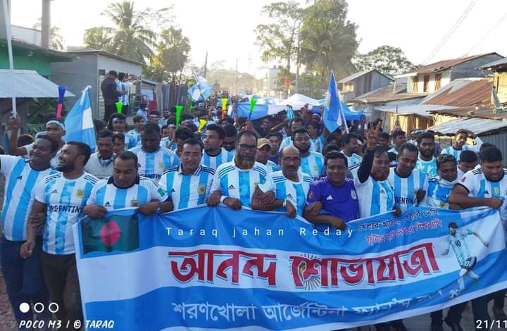 শরণখোলায় ব্রাজিল সমর্থকদের পাল্টা জবাবে আর্জেন্টিনা সমর্থকদের বিশাল র‍্যালি