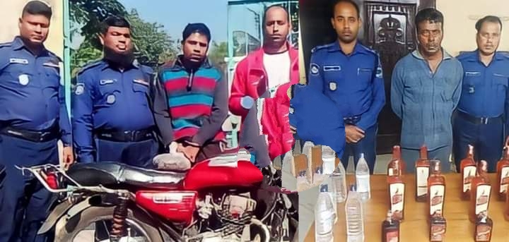 আটককৃতরা হলো, বরিশাল গৌরনদী এলাকার মৃত হাসেম মাতুব্বরের ছেলে দুলাল মাতুব্বর (৪৫), বেনাপোল গয়ড়া গ্রামের শরিফুলের ছেলে রাকিব হোসেন (২০) ও নারায়নপুর গ্রামের আলাউদ্দিন বিশ্বাসের ছেলে মাহাবুর রহমান (৩৪)। পুলিশ জানায়, মাদক বেচাকেনার গোপন খবরে, বেনাপোল চেকপোস্ট এলাকার বড় আঁচড়া এমপি মোড়ের সামনে থেকে একটি বাংলাদেশি ট্রাক থেকে ১৭ বোতল ভারতীয় মদ সহ দুলালকে, একই স্থান থেকে ২০ বোতল ফেনসিডিল ও একটি মোটরসাইকেল সহ রাকিবকে ও ৫০০ গ্রাম গাঁজা ও একটি মোটরসাইকেল সহ মাহাবুরকে আটক করা হয়।