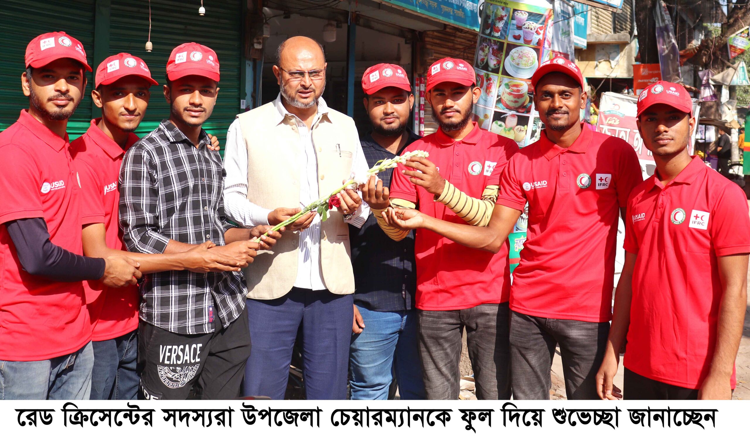 শ্যামনগর ব্যুরো ঃ সাতক্ষীরার শ্যামনগরে বাংলাদেশ রেড ক্রিসেন্ট সোসাইটি শ্যামনগর উপজেলা যুব রেড ক্রিসেন্টের পক্ষে থেকে উপজেলা প্রশাসনের বিভিন্ন দপ্তরের প্রধানদের সাথে ফুলের শুভেচ্ছা বিনিময় করছে উপজেলা ইউনিটের সদস্যরা। বুধবার (৩০ নভেম্বর) সকালে প্রথমে উপজেলা পরিষদের চেয়ারম্যান এস.এম আতাউল হক দোলন পরে উপজেলা মহিলা ভাইস চেয়ারম্যান মিসেস খালেদা আইয়ুব ডলি, উপজেলা নির্বাহী কর্মকর্তা (ইউএনও) মোঃ আক্তার হোসেন, উপজেলা সহকারী কমিশনার (ভূমি) মোঃ আসাদুজ্জামান, উপজেলা স্বাস্থ্য ও পরিবার পরিকল্পনা কর্মকতা ডাঃ জিয়াউর রহমান, উপজেলা প্রকল্প বাস্তবায়ন কর্মকতা মোঃ শাহিনুল ইসলাম, শ্যামনগর থানা ওসি (তদন্ত). হাওঃ সানওয়ার হোসাইন মামুন, উপজেলা স্বাস্থ্য কমপ্লেক্সের আবাসিক মেডিকেল অফিসার জি.এম তরিকুল ইসলাম ও শ্যামনগর উপজেলা প্রেসক্লাবের সভাপতি জি.এম আকবর কবীরের সাথে এই শুভেচ্ছা বিনিময় হয়। এসময় উপস্থিত ছিলেন, শ্যামনগর যুব রেড ক্রিসেন্টের দলনেতা মোঃ আনিছুর রহমান মিলন, বিভাগীয় উপ-দল নেতা-১ মোঃ হিমেল হোসেন, বিভাগীয় দল নেতা-২ তানিয়া সুলতানা, বিভাগীয় জনসংযোগ ও পরিকল্পনা প্রধান সুমাইয়া পারভিন, বিভাগীয় উপ-প্রধান জনসংযোগ ও পরিকল্পনা খানজাহান আলী, বিভাগীয় প্রধান-(বন্ধুত্ব) রিয়াজ হোসেন, বিভাগীয় প্রধান-(রক্ত) মুনতাকিমুল ইসলাম রুহানী, সদস্য শাকিল হোসেন, জামাল বাদশা, মহিউদ্দিন প্রমুখ।