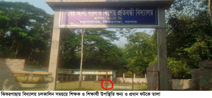 স্টাফ রিপোর্টার : যশোরের ঝিকরগাছার বাবরআলী সরদার বিশেষ প্রতিবন্ধী বিদ্যালয়ের চলকালিন সময়য়ে শিক্ষক ও শিক্ষার্থী উপস্থিতি শুন্য। প্রতিষ্ঠানের কোন প্রকার অনুষ্ঠান হলে সেই দিন শিক্ষার্থী বসানোর স্থান খুঁজে পাওয়া দায় হয়ে থাকে বলে এলাকায় একাধিক অভিযোগ উঠার বিষয়ে তথ্য অনুসন্ধানে স্থানীয় সংবাদকর্মীরা গত ৩০ নভেম্বর বুধবার বেলা সাড়ে ১১টার সময় ঝিকরগাছা উপজেলার পানিসারা ইউনিয়নের রঘুনাথনগরের অবস্থিত ঐতিহ্যবাহী শিক্ষাপ্রতিষ্ঠান বাবরআলী সরদার বিশেষ প্রতিবন্ধী বিদ্যালয়ে উপস্থিত হয়ে বিদ্যালয়েরর বাস্তবতার চিত্র তুলে ধরেন। উক্ত দিন বিদ্যালয়ের সহকারী প্রধান শিক্ষক মোছাঃ রেহেনা খাতুনের সাথে দেখা হলে তিনি বলেন, প্রতিনিয়ত সকাল ৯টা থেকে দুপুর ২টা পর্যন্ত ৯০-১০০জন শিক্ষার্থী নিয়ে প্রতিষ্ঠান চলে। আমাদের সংরক্ষিত ছুটি চলছে। আজ (বুধবার) ও কাল (বৃহস্পতিবার) আমাদের বন্ধ। তবে সেই সময় তারা বিদ্যালয় বন্ধের কোন নোটিশ দেখাতে ও কর্মরত শিক্ষক ও অধ্যায়নরত শিক্ষার্থীদের তালিকা চাওয়া হলে সেটাও তিনি দিতে পারেনি। পরবর্তীতে বিদ্যালয় কর্তৃপক্ষ শনিবার (০৩ ডিসেম্বর) একটি বহুপ্রচালিত দৈনিক পত্রিকায় বৃহস্পতিবার (০১ ডিসেম্বর) ৪শ ৭০জন শিক্ষার্থীর উপস্থিতিতে কাস হওয়ার কথা উল্লেখ করেন। বিদ্যালয়ের সহকারী প্রধান শিক্ষকের বক্তব্য অনুযায়ী তাদের সংরক্ষিত ছুটি শেষে রবিবার (০৪ ডিসেম্বর) সকাল ৯টা থেকে দুপুর ২টা পর্যন্ত বিদ্যালয় চলবে। রবিবার (০৪ ডিসেম্বর) দুপুর ১টা ২৫মিনিটের সময় স্থানীয় সংবাদকর্মীরা বিদ্যালয়ে উপস্থিত হলে বিদ্যালয়ের মেন ফটক তালাবদ্ধ পাওয়া যায়। তাৎক্ষনিক ভাবে প্রধান শিক্ষক মোঃ মহিতুল রহমানের সাথে যোগাযোগ করা হলেন তিনি বলেন, সবদিন তো এক রকম চলবে না। আর এখন তো ডিসেম্বর মাস। বাচ্চাদের পরিক্ষারও বিষয় আছে। আজকে বাচ্চাদের পরিক্ষা ছিলো কি না জানতে চাইলে তিনি বলেন, আজকে কোনো পরিক্ষা ছিলো না। তিনি আজ বিদ্যালয়ে আসছিলেন কি না জানতে চাইলে তিনি বলেন, আমি আপনার সাথে পরে কথা বলি বলে তিনি ফোন রেখে দেন। সভাপতি মোঃ আব্দুল আলিম বলেন, আমি এখন ঢাকায় যাওয়ার জন্য রওনা দিয়েছি। বিদ্যালয়ের সময় ২টার সম্পর্কে জানতে চাইলে তিনি বলেন, প্রতিবন্ধী বাচ্চাদের ২টা পর্যন্ত রাখা যায় ! দেড়টার সময় গাড়ি চলে যায়। আমরা সব ৫/৭মিনিট আগে বেরিয়ে আইছি।