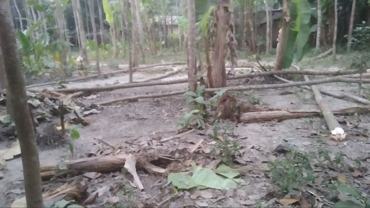 আসাদুজ্জামান অভিযোগ করেন, সোমবার দুপুরে নুরুল ইসলামের নেতৃত্বে শহিদুল ইসলাম মিলনসহ একদল সন্ত্রাসী ওই জমি দখল নিতে যায়। এসময় জমিতে থাকা বিভিন্ন প্রকার বনজ, ফলজ ও ওষুধি গাছ কেটে সাবাড় করে দেয়। তারা জমিতে থাকা অন্তত: ৫০টি গাছ কেটে দেয়। এতে তার অর্ধ লাখ টাকার ক্ষতি হয়েছে।