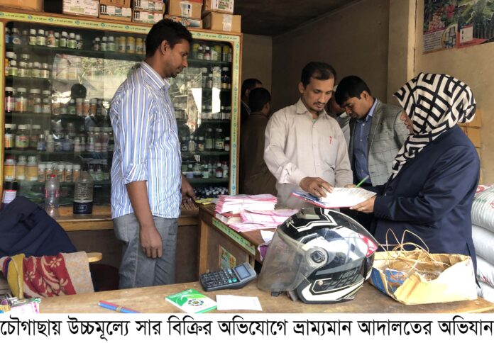 চৌগাছায় উচ্চমূল্যে সার বিক্রির অভিযোগে অভিযান ৬৩ বস্তা সার জব্দ ১৫ হাজার টাকা জরিমানা