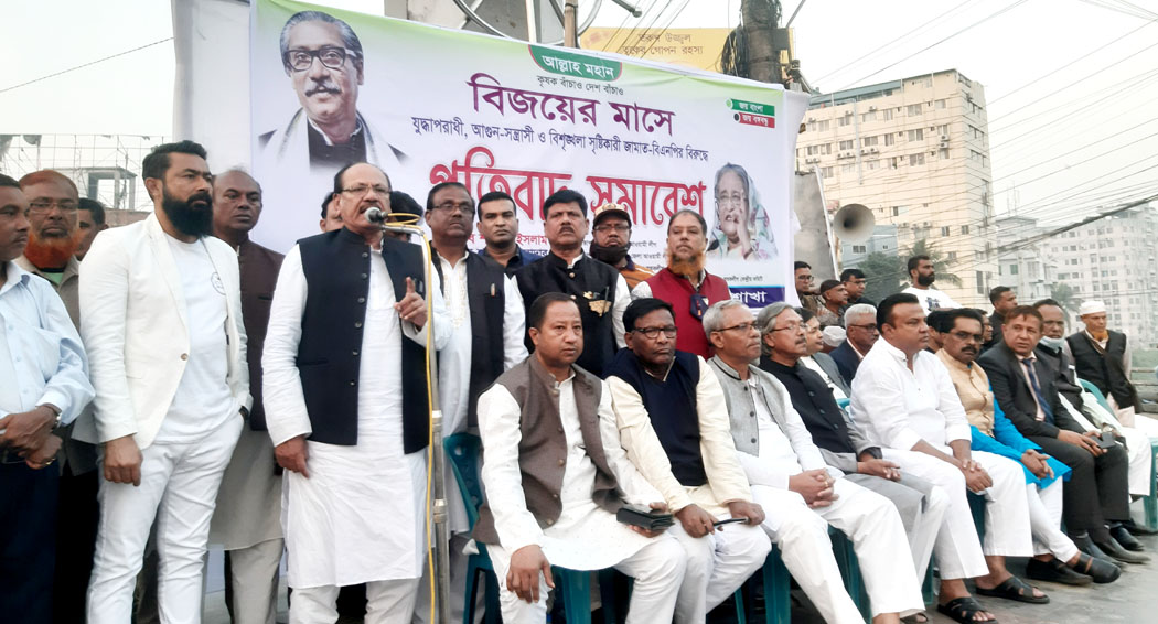 বিজয়ের মাসে ‘যুদ্ধাপরাধী, আগুন-সন্ত্রাসী জামাত-বিএনপির বিশৃঙ্খল তৎপরতার’ বিরুদ্ধে এ প্রতিবাদ সমাবেশ অনুষ্ঠিত হয়।