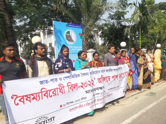 সবশেষে জাত-পাত ও পেশাভিত্তিক বৈষম্য প্রতিরোধে আইন কমিশন সুপারিশ করা প্রস্তাবিত বৈষম্য বিলোপ আইন দ্রুত প্রণয়নের জোর দাবি জানান।