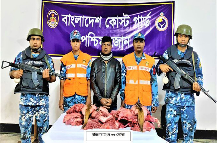 কোস্টগার্ড জাসনায়, গোপন সংবাদের ভিত্তিতে সোমবার ১২ ডিসেম্বর ২০২২ আনুমানিক রাত ২টার দিকে বাংলাদেশ কোস্ট গার্ড পশ্চিম জোন অধিনস্থ বিসিজি বেইস মোংলা ও সুন্দরবন সংলগ্ণ বানিয়াশান্তা বাজার এলাকায় অভিযান চালায়। এসময় সন্দেহজনক এক মোটর সাইকেল আরোহীকে কোস্ট গার্ড সদস্যরা গাড়ীটি থামাতে বললে মোটর সাইকেল আরোহী না থেমে দ্রুত পালিয়ে যাওয়ার চেষ্টা করে। পরে কোস্ট গার্ড সদস্যরা ধাওয়া করে মোঃ আজিজুল গাজী (৩৮) নামক এক হরিণ শিকারীকে আটক করতে সম হয়। পরবর্তীতে মোটর সাইকেলের পিছনে থাকা প্লাস্টিকের বস্তায় তল্লাশী করে ৩৬ কেজি হরিণের মাংস জব্দ করা হয়। আটক আজিজুল গাজী খুলনা জেলার দাকোপ থানার আমতলা গ্রামের বাসিন্দা।