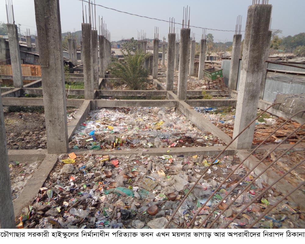চৌগাছা (যশোর) প্রতিনিধি ॥ যশোরের চৌগাছার ঐতিহ্যবাহি সরকারী শাহাদৎ পাইলট মডেল মাধ্যমিক বিদ্যালয়ের নিজস্ব জমিতে সাত বছর আগে ভবন নির্মানের কাজ শুরু হয় কিন্তু আজও শেষ হয়নি। বছরের পর বছর নির্মান কাজ বন্ধ থাকায় নষ্ট হয়ে যাচ্ছে রড আর নির্মিত পিলারসহ অন্য কিছু। স্থানটি পরিত্যাক্ত হওয়ায় এক শ্রেনীর অসাধু ব্যক্তি সেখানে ময়লার ভাগাড় তৈরী করেছে আর রাতে মাদকসেবিদের জন্য নিরাপদ আশ্রায় কেন্দ্র হয়েছে বলে দাবি স্থানীয়দের। ভবনটি দ্রুত নির্মানের দাবি করেছেন ভুক্তভোগীসহ উপজেলার সচেতন মহল।