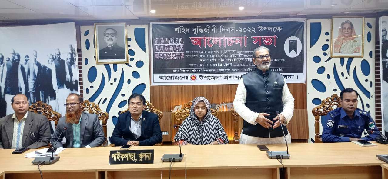পাইকগাছা প্রতিনিধি : পাইকগাছায় উপজেলা প্রশাসন, আওয়ামীলীগ ও সহযোগী অঙ্গ সংগঠন এবং বিভিন্ন প্রতিষ্ঠানের উদ্যোগে শহীদ বুদ্ধিজীবী দিবস পালিত হয়েছে। বুধবার সকাল সাড়ে ২১টায় উপজেলা মিলনাতনে উপজেলা নির্বাহী অফিসার মমতাজ বেগম এর সভাপতিত্বে আলোচনা সভায় প্রধান অতিথি ছিলেন উপজেলা চেয়ারম্যান ও আ’লীগের সভাপতি মোঃ আনোয়ার ইকবাল মন্টু। বিশেষ অতিথি ছিলেন, মেয়র সেলিম জাহাঙ্গীর, শেখ শাহাদাত হোসেন বাচ্চু, শহীদ পরিবারের সন্তান অবঃ প্রধান শিক্ষক সুরাইয়া বানু ডলি। সহকারী প্রোগ্রামার মৃদুল কান্তি দাশ এর সঞ্চালনায় বক্তৃতা করেন ও উপস্থিত ছিলেন, বীর মুক্তিযোদ্ধা আঃ রাজ্জাক মলঙ্গী, কাজী তোকারেম হোসেন, উপজেলা মাধ্যমিক কর্মকর্তা মোঃ শাহজাহান আলী শেখ, শিক্ষা অফিসার বিদ্যুৎ রঞ্জন সাহা, সমাজ সেবা কর্মকর্তা সরদার আলী আহসান, ইউআরসি ইন্সট্রাক্টর মোঃ ঈমান উদ্দীন, পল্লী সঞ্চয় ব্যাংকের ব্যবস্থাপক জয়ন্ত কুমার ঘোষ,