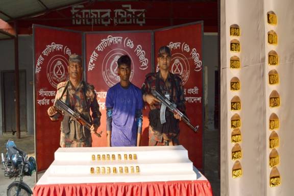 যশোর অফিস : যশোরের চৌগাছা উপজেলার তিলকপুর সীমান্ত এলাকা থেকে ১৮ টি স্বর্ণের বারসহ নাজমুল হোসেন (২২) নামে এক যুবককে আটক করেছে বিজিবি। বুধবার দুপুর ৩টার দিকে অভিযান চালিয়ে তাকে আটক করা হয়।
