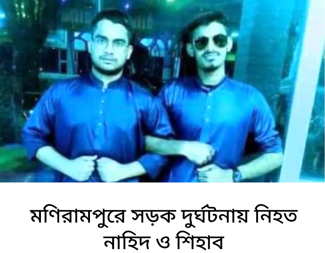 নিহত দুই যুবক যশোরের মণিরামপুরের নাহিদ হাসান (২২) ও শিহাব হোসেন (১৮)। বুধবার (১৪ ডিসেম্বর-২০২২) দিবাগত রাতে মোটরসাইকেল নিয়ন্ত্রণ হারিয়ে মণিরামপুর-রাজগঞ্জ সড়কের কাশিপুর বটতলা নামক স্থানে দুর্ঘটনায় মৃত্যু হয় তাঁদের। নিহত নাহিদ হাসান উপজেলার মাছনা গ্রামের মুফতি ইসমাইল হোসেনের মেজো ছেলে। আল কোরআনের হেফজ সম্পন্ন করে যশোরে একটি মাদ্রাসায় লেখাপড়া করতেন তিনি। বাবা ইসমাইল হোসেন মাছনা মাদ্রাসার শিক্ষক। আর নিহত শিহাব হোসেন সম্পর্কে নাহিদের আপন মামাত ভাই। উপজেলার মোহনপুর গ্রামের স্বর্ণকার মোস্তাক হোসেনের ছেলে তিনি। শিহাব মাদানীনগর মাদ্রাসায় লেখাপড়া শেষে বালিয়াডাঙা মাধ্যমিক বিদ্যালয়ে দশম শ্রেণিতে অধ্যয়নরত ছিলেন।