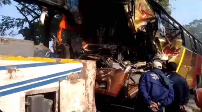 নিহত মোহাম্মদ আলী নরসিংদী জেলার সানেরবাড়ি এলাকার মৃত শাহাজ উদ্দিনের ছেলে। মাগুরার রামনগর হাইওয়ে পুলিশের ভারপ্রাপ্ত কর্মকর্তা লিয়াকত হোসেন জানান, শালিখা উপজেলার ছয়ঘরিয়া এলাকায় নরসিংদী থেকে যশোর গামী মামুন পরিবহনের একটি বাস নিয়ন্ত্রণ হারিয়ে রাস্তার পাশে দাঁড়িয়ে থাকা একটি ট্রাকের পেছনে ধাক্কা দেয়। এতে বাসের যাত্রী মোহাম্মদ আলী ঘটনাস্থলেই নিহত হন। এ সময় আহত হন আরও ৩ জন। আহতরা হলেন নিহতের ছেলে শান্ত মোল্যা, বাসের হেলপার ইলিয়াস হোসেন ও সুপার ভাইজার আমির হোসেন। আহতদের মাগুরা ফায়ার সার্ভিসের সদস্যরা উদ্ধার করে মাগুরা ২৫০ শয্যা বিশিষ্ট হাসপাতালে ভর্তি করেছে।