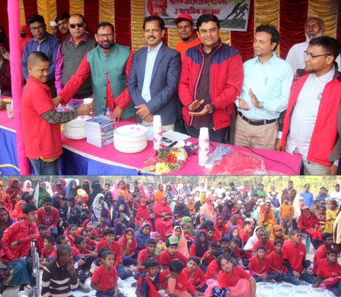 খাজুরা (যশোর) প্রতিনিধি : মহান বিজয় দিবস উদযাপন উপলক্ষে যশোরের বাঘারপড়া উপজেলা আরশাদ আছিয়া অটিজম ও বুদ্ধি প্রতিবন্ধী বিদ্যালয়ের আয়োজনে ক্রীড়া ও সাংস্কৃতিক প্রতিযোগিতা অনুষ্ঠিত হয়েছে। সোমবার (১৯ ডিসেম্বর) এ অনুষ্ঠানের আয়োজন করা হয়। দিনভর আনন্দ-উল্লাস ও হৈ-হুল্লোড়ে মেতে ওঠে নানা বয়সী প্রতিবন্ধী শিক্ষার্থীরা। এতে খুশি অভিভাবক ও স্বজনেরা। এমন আয়োজনকে কেন্দ্র করে এদিন স্থানীয় প্রেমচারা বলফিল্ড মাঠে উৎসবের আমেজ বিরাজ করে। সকাল ৯টার পর একেএকে বিদ্যালয়ের নিজস্ব দুটি গাড়িতে করে দুর-দুরান্তের শিক্ষার্থীরা অনুষ্ঠানস্থলে হাজির হয়। বেলা ১০টায় প্রতিযোগিতার উদ্বোধন করেন, দৈনিক গ্রামের কাগজ’র নির্বাহী সম্পাদক আসাদ আসাদুজ্জামান ও দৈনিক কল্যাণ’র মফস্বল সম্পাদক এস শামছুদ্দিন জ্যোতি। এর পরপরই বালিশ খেলা, বল নিক্ষেপ, মোরগ লড়াই, বিস্কুট খাওয়া, দৌড় সহ ক্রীড়ার নানা প্রতিযোগিতায় অংশ নেয় বিশেষ চাহিদা সম্পন্ন ওই সব শিক্ষার্থীরা। চলে ঠিক বেলা দেড়টা পর্যন্ত। বিকেলে সাংস্কৃতিক পর্বে নাচ, গান, কবিতা আবৃত্তি অংশ নেওয়া প্রতিবন্ধী শিক্ষার্থীরা নিজের লুকায়িত সুপ্ত প্রতিভাকে তুলে ধরে। ‘প্রতিবন্ধী মানেই প্রতিভাবন্ধী নয়’ সেটি নিজেকে দিয়েই দেখিয়ে দিলেন বিদ্যালয়ের প্রথম শ্রেণীর এক ছাত্রী। জন্ম থেকেই তার দুই পা বিকল। মঞ্চের কার্পেটের ওপর বসে পা দিয়ে নিজের নাম লিখলেন ‘রেশমা খাতুন’। এর পরপরই দৃষ্টি প্রতিবন্ধী চতুর্থ শ্রেণীর ছাত্রী সোনাভান তার সুরেলা কন্ঠে গেয়ে উঠলেন ‘হাইরে আমার মন মাতানো দেশ, হাইরে আমার সোনা ফলা মাটি…’ গানটি। উপস্থিত সবাই অবাক হয়ে শুনলেন। শুধু তাই নয়; গানের তালে প্রথম শ্রেণীর হাবিবা খাতুনের উড়াধুড়া নাচে মুগ্ধতা ছড়ায়। বিকেলে প্রতিযোগিতার পুরস্কার বিতরণ অনুষ্ঠানে সভাপতিত্ব করেন আরশাদ আছিয়া ওয়েলফেয়ার সোসাইটির সাধারণ সম্পাদক শামীম আকতার। প্রধান অতিথি ছিলেন, যশোর জেলা ঘাতক দালাল নির্মূল কমিটির সভাপতি কমরেড হারুন-অর-রশিদ। বিশেষ অতিথি ছিলেন, দৈনিক গ্রামের কাগজ’র প্রকাশক ও সম্পাদক মবিনুল ইসলাম, দৈনিক জনকন্ঠ’র নিজস্ব প্রতিবেদক সাজেদ রহমান বকুল, দৈনিক সমাজের কথা’র বার্তা সম্পাদক মিলন রহমান ও প্রেমচারা অস্থায়ী পুলিশ ক্যাম্পের ইনচার্জ রবীন্দ্রনাথ মজুমদার। আরশাদ আছিয়া অটিজম ও বুদ্ধি প্রতিবন্ধী বিদ্যালয়ের সহকারী শিক্ষক রফিকুল ইসলাম খানের সঞ্চালনায় অনুষ্ঠানে স্বাগত বক্তব্য রাখেন প্রধান শিক্ষক রুখশানা শার্মীন। এ সময় ইউপি সদস্য মফিজুর রহমান, জাপা নেতা আইয়ুব আলী, সাবেক ইউপি সদস্য আলম মোল্যা ও হালিম বিশ্বাস প্রমুখ উপস্থিত ছিলেন। ##