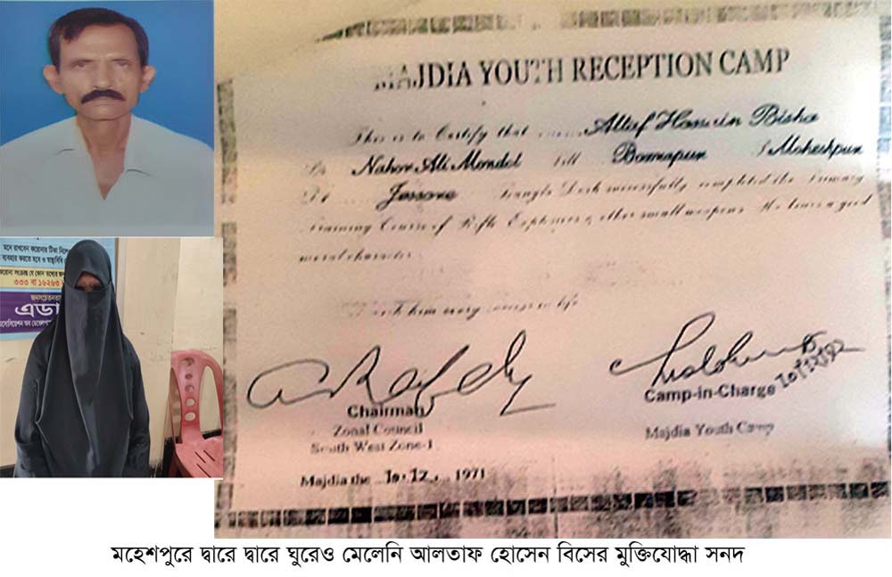 মহেশপুর(ঝিনাইদহ)অফিস ঃ ‘আমার স্বামী মারা যাওয়ার পর আমি ছেলে-মেয়েকে নিয়ে অনেকের দ্বারে দ্বারে ঘুরেছি। কোনো লাভ হয়নি। সকলেই বলে সব কাগজপত্র জলের মত পরিষ্কার। কিন্তু শেষ অবধি কোনো কাজ হয়নি। এটা আমার স্বামীর জীবনের সবচেয়ে বড় ব্যার্থতা। বুধবার সকালে মহেশপুর প্রেসকাবে এসে উপজেলার এসবিকে ইউনিয়নের বজরাপুর গ্রামের মুক্তিযোদ্ধা আলতাফ হোসেন বিসের স্ত্রী রিনা বেগম কান্নজড়িত কণ্ঠে কথাগুলো বলেন। জানা যায়, ভারতের মাজদিয়া ইয়থ রিসিপশন ক্যাম্পে প্রশিক্ষন শেষে আলতাফ হোসেন বিসে দেশে ফিরে মুক্তিযুদ্ধের সময় তিনি ৮নং সেক্টরের যুদ্ধকালীন কমান্ডার মোস্তাফিজুর রহমানের অধীনে যুদ্ধ অংশ নেন। যুদ্ধ চলাকালীন জীবননগর-উথলিসহ বিভিন্ন এলাকায় হানাদার বাহিনীর বিরুদ্ধে সম্মুখ যুদ্ধে অংশ নেন তিনি।