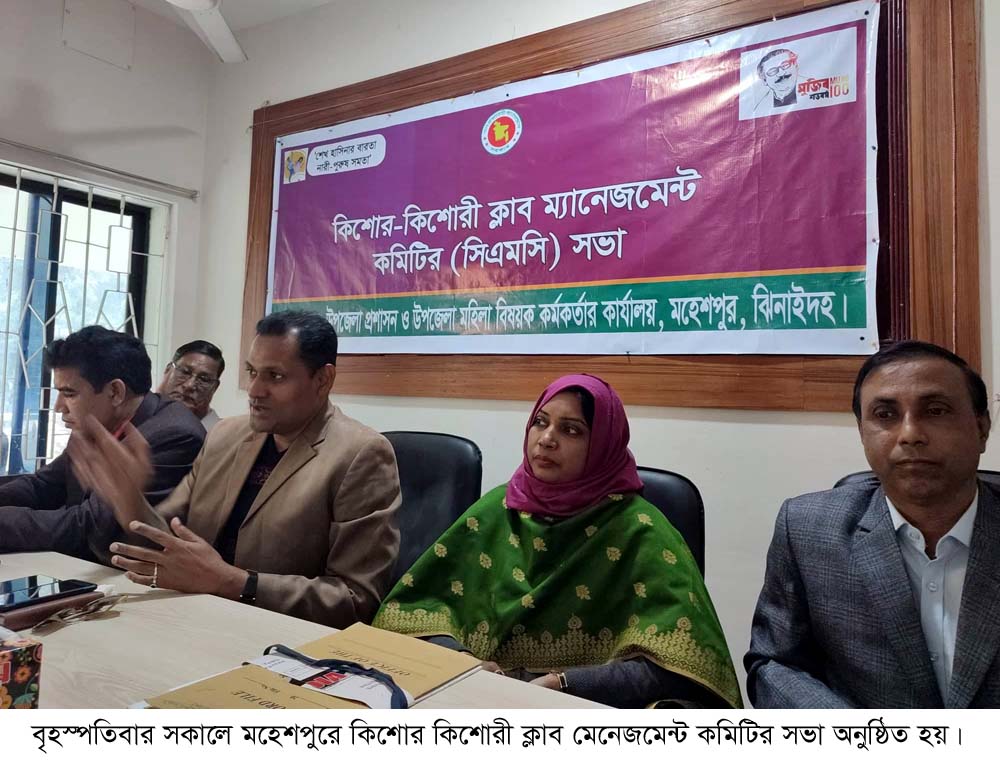 মহেশপুর(ঝিনাইদহ)অফিস: ঝিনাইদহের মহেশপুরে কিশোর কিশোরী ক্লাব স্থাপন প্রকল্পের ক্লাব ম্যানেজম্যান্ট (সি.এম.সি) কমিটির সভা অনুষ্ঠিত হয়েছে।