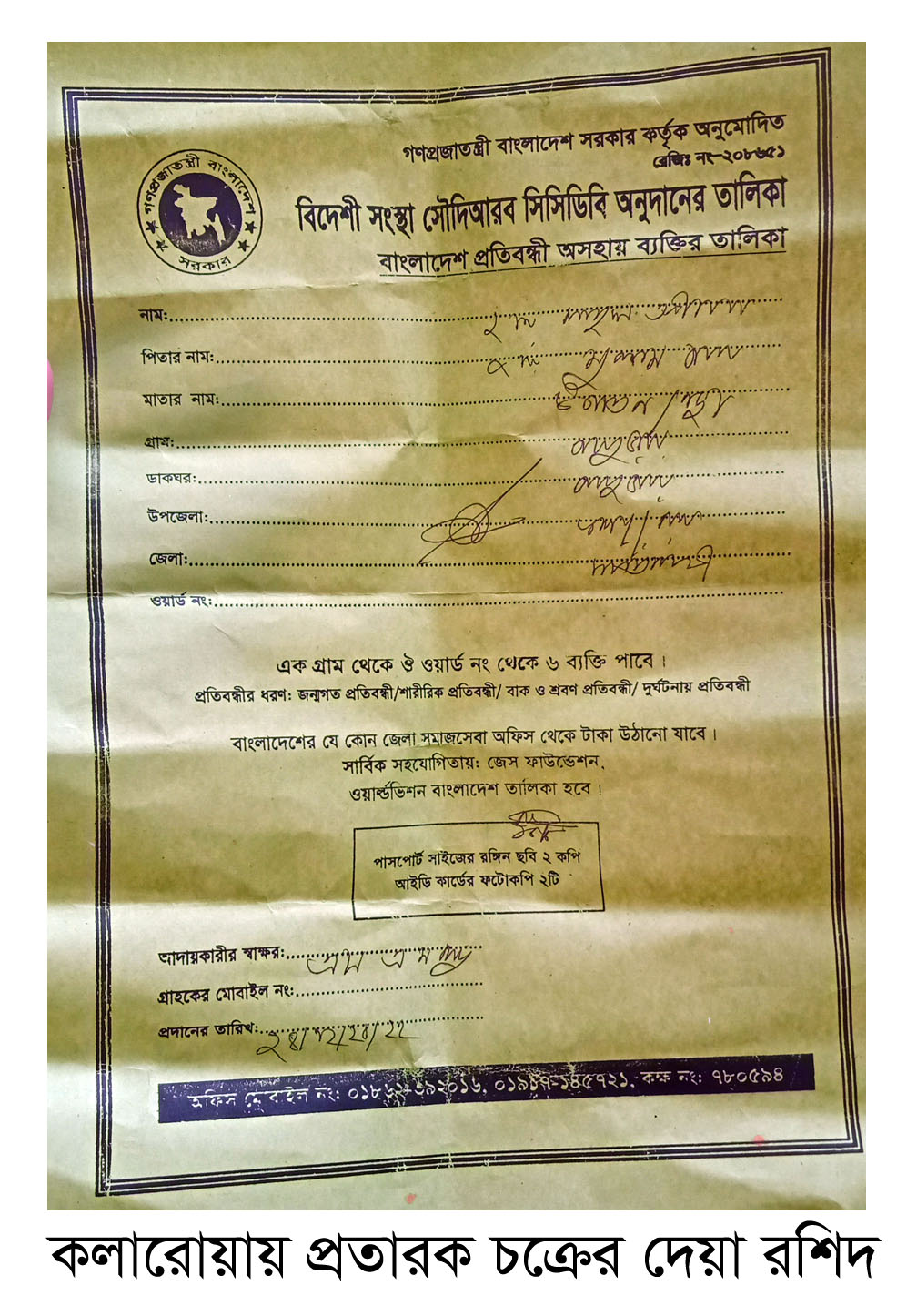পরিষদের ২নং ওয়ার্ডের সদস্য আব্দুল জলিল বলেন-প্রতারক চক্রের দেয়া রশিদ এ