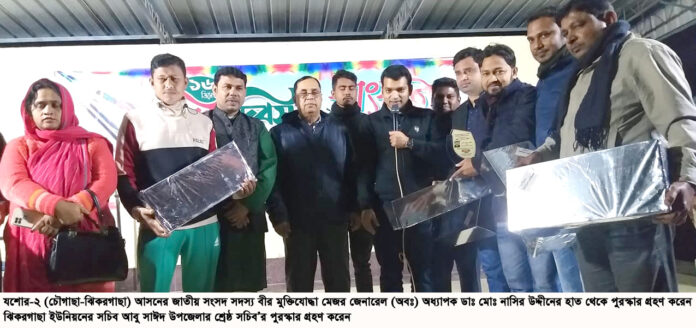 ঝিকরগাছা ইউপি সচিব আবু সাঈদ উপজেলার শ্রেষ্ঠ সচিব’র পুরস্কার দিলেন ডাঃ নাসির উদ্দীন এমপি