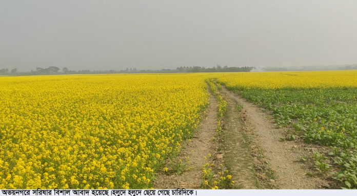 রাজয় রাব্বি, অভয়নগর (যশোর) : যশোরের অভয়নগর উপজেলায় সরিষার বিশাল আবাদ হয়েছে। হলুদ সরিষায় রঙিন প্রকৃতি। হলুদে হলুদে ছেয়ে গেছে চারিদিকে। হিমেল হাওয়ায় সরিষা ফুলের এলোমেলো দোলা চালে জুড়িয়ে যাচ্ছে প্রান। সরিষা ফুলের এমন সমাহরে খুশি কৃষক ও সরিষা থেকে মধু আহরন করা মৌয়ালরা। বাড়তি উপার্জনে স্বপ্নে বিভোর তারা। সহযোগিতা দিয়ে পাশে দাড়িয়েছে উপজেলা কৃষি সম্প্রসারণ অধিদপ্তর। উপজেলার আটটি ইউনিয়নে সরিষার আবাদ হয়েছে। মাঠের পর মাঠ দেখা মিলবে এমন হলুদের সরিষা। এখানকার সরিষা স্থানীয় চাহিদা মিটিয়ে দেশের বিভিন্ন মোকামে পাঠানো হয়।