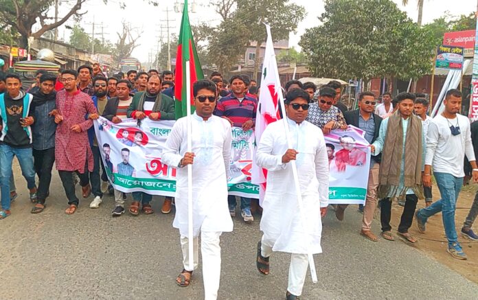 ইমন সাতক্ষীরা কালিগঞ্জ প্রতিনিধিঃ-কালীগঞ্জে নবগঠিত ছাত্রলীগের সভাপতি মামুন ও সাধারণ সম্পাদক রাসেল এর নেতৃত্বে বিজয় র্যালী অনুষ্ঠিত হয়, ২৭ডিসেম্বর-২২ মঙ্গলবার বিকাল ৪টায় কালিগঞ্জ সরকারি কলেজ চত্বর থেকে আনন্দ র্যালী শুরু হয়ে কালীগঞ্জের প্রধান প্রধান সড়ক প্রদক্ষিণ শেষে নাজিমগঞ্জ বাজারে পথসভার মাধ্যমে শেষ হয়, এ সময় উপস্থিত ছিলেন ক্রমান্বয়ে, কালিগঞ্জ উপজেলা আওয়ামী লীগের সভাপতি মাস্টার নরিম আলী মুন্সি, কালিগঞ্জ উপজেলা আওয়ামী লীগের সাধারণ সম্পাদক এনামুল হক (ছোট), আন্তর্জাতিক ফিফা রেফারি ও উজ্জীবনী ইনস্টিটিউট এর প্রধান শিক্ষক ইকবাল আলম (বাবলু), কালিগঞ্জ উপজেলা স্বেচ্ছাসেবকলীগের সাধারণ সম্পাদক তানভীর আহমেদ (উজ্জল), কালিগঞ্জ উপজেলা যুবলীগের সাধারণ সম্পাদক (ভারপ্রাপ্ত) লক্ষণ কুমার ঘোষ, কালিগঞ্জ উপজেলা যুবলীগের সাংগঠনিক সম্পাদক জাহিদ হাসান, কালিগঞ্জ উপজেলা আওয়ামী এর প্রচার ও প্রকাশনা সম্পাদক আব্দুর রহমান, কালিগঞ্জ উপজেলা আওয়ামী নেতা শফিকুল মাস্টার, কালিগঞ্জ শ্রমিক ইউনিয়নের সভাপতি মনিরুজ্জামান (মনি), কালিগঞ্জ উপজেলা তাঁতী লীগের সভাপতি আবু বক্কর, কালিগঞ্জ উপজেলা ছাত্রলীগের (সাবেক) সভাপতি কাজী নুর আহমেদ রনি, কালিগঞ্জ উপজেলা ছাত্রলীগের সাধারণ সম্পাদক (সাবেক) ফিরোজ শাহরিয়ার, উপজেলা শ্রমিকলীগের সবুর গাজী, কালিগঞ্জ উপজেলা ছাত্রলীগের (সাবেক) সভাপতি বাবু গৌতম লস্কর, সাবেক ছাত্রলীগ নেতা মীর সোহাগ, কালিগঞ্জ সরকারি কলেজ ছাত্রলীগের সভাপতি নেছার ও সাধারণ সম্পাদক (বাপ্পি),ছাত্রলীগ নেতা তামিম আহমেদ (রনি) এছাড়াও কালিগঞ্জ উপজেলার ১২টি ইউনিয়ন থেকে আসা ছাত্রলীগের অসংখ্য নেতাকর্মী, আনন্দ র্যালী শেষে,কালিগঞ্জ নবগঠিত উপজেলা ছাত্রলীগের সভাপতি ও সাধারণ সম্পাদক, জেলা ছাত্রলীগ সভাপতি ও সাধারণ সম্পাদক কে, কৃতজ্ঞতা জ্ঞাপন করে বলেন, তাদের উপরে অর্পিত দায়িত্ব যথাযথভাবে পালন করবেন এবং জননেত্রী শেখ হাসিনার হাতকে শক্তিশালী করতে, ও সংগঠনকে সামনের দিকে এগিয়ে নিতে, নিরলস কাজ করবেন বলে সাংবাদিকদের জানান।।