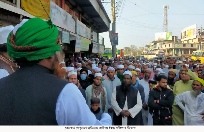 কোরআন পোড়ানোর প্রতিবাদে কালীগঞ্জ ঈমাম পরিষদের বিক্ষোভ