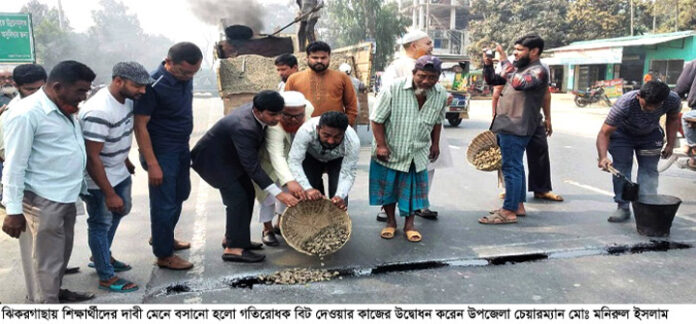 বৃহস্পতিবার (৯ ফেব্রয়ারি) দুপুরে যশোরের সড়ক ও জনপথ বিভাগ কর্তৃক ঝিকরগাছা উপজেলা মোড়, বিএম হাইস্কুলের সামনে ও হাসপাতাল মোড় এলাকাতে পৃথক ভাবে তিনটি স্থানে গতিরোধক বিট স্থাপনের কাজ শুরু করেছে। আর এই গতিরোধক বিট দেওয়ার কাজের উদ্বোধন করেন উপজেলা চেয়ারম্যান মোঃ মনিরুল ইসলাম। এসময় উপস্থিত ছিলেন, ঝিকরগাছা বিএম হাইস্কুলের প্রধান শিক্ষক মোঃ আব্দুস সামাদ, বীর মুক্তিযোদ্ধা মোতাচ্ছিম বিল্লাহ শিশু একাডেমির সহকারী শিক্ষক হাফেজ আরিফুজ্জামান, ঝিকরগাছার ঐতিহ্যবাহী সেবা সংগঠন ও ঝিকরগাছা রিপোর্টার্স ক্লাব’র প্রতিষ্ঠাতা সভাপতি মাস্টার আশরাফুজ্জামান বাবু সহ আরও অনেকে।
