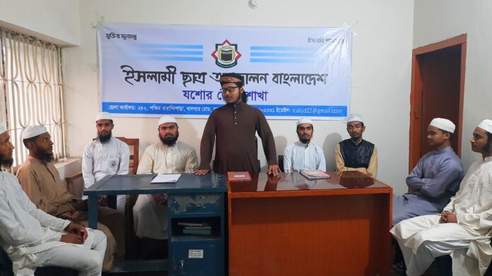 যশোর : ইসলামী ছাত্র আন্দোলন বাংলাদেশ যশোর জেলা শাখার মাসিক সভা অনুষ্ঠিত হয়েছে (১০ ফেব্রুয়ারি) শুক্রবার বিকাল ৩ টায়, ইসলামী ছাত্র আন্দোলন বাংলাদেশ যশোর জেলা শাখার সভাপতি মুহাম্মাদ আব্দুল আওয়াল এর সভাপতিত্বে ও সাধারণ সম্পাদক মুহাম্মাদ ফয়েজ গাজীর সঞ্চালনায় মাসিক সভায় উপস্থিত ছিলেন, জেলা শাখার সহ-সভাপতি মুহাম্মাদ হাবিবুর রহমান, সাংগঠনিক সম্পাদক মুহাম্মাদ ইমরান হুসাইন, প্রশিক্ষণ সম্পাদক আবুল হাসান,