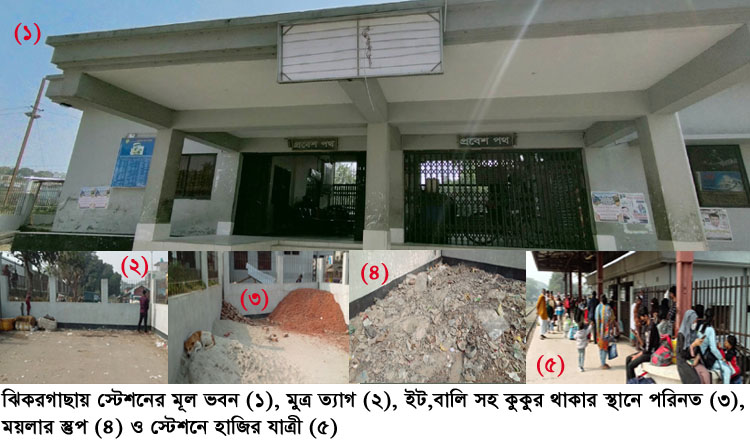 স্টেশন এলাকায় পরিচ্ছন্নতা কর্মী শিমলার স্থলে শিবনাথ নামে আর একজনকে দেখা পাওয়া গেলে সেখানে তার কাজের সম্পর্কে জানতে চাইলে তিনি বলেন, আমার মামী শিমলা অসুস্থ। তার জন্য আমি তার পরিবর্তে কাজ করছি। আমার দরকার হলে তাকে ফোন করলে তিনি ঝিকরগাছায় আসেন। আর না দরকার হলে আসেন না। আমাকে মাসে ৩২০০ টাকা দেয়। স্টেশন মাস্টার নিগার সুলতানা বলেন, রেলওয়ে স্টেশনের বাথরুম এসির যাত্রীদের জন্য খোলা হয়। পরিচ্ছন্নতা কর্মী শিমলা রাণী অসুস্থ মাঝেমধ্যে আসে। আর ওর কাজ তার আত্মীয় শিবকে দিয়ে করায়। স্টেশন এলাকায় ময়লা অর্বজনা বা দু’টি গাড়ি পার্কিং এর স্থানে মানুষ প্রসাব করা বন্ধের বিষয়ে কোনো ব্যবস্থা গ্রহণ করবেন কিনা জানতে চাওয়া হলে তিনি উত্তর না দিয়ে ফোন কেটে দেন।
