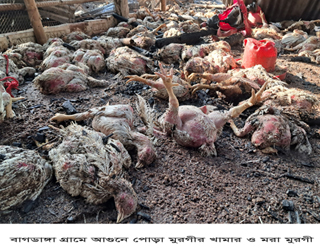 প্রতিদিনের ন্যায় রাত ১২ টার দিকে মুরগীর খাবার দিয়ে তিনটি খামারের দরজা বন্ধ করে নিজ ঘরে ঘুমিয়ে পড়েন তরিকুল ইসলাম।হঠাৎ রাত ২ টার দিকে মুরগী পোড়ার গন্ধে ও জীবিতদের ডাকাডাকিতে তার ঘুম ভেঙ্গে যাই।পরে তিনি দেখতে পারেন তার খামারে দাউ দাউ করে আগুন জ্বলছে।এ সময় তার চিৎকারে এলাকাবাসী ছুটে এসে আগুন নিয়ন্ত্রনের আগেই তার তিনটি ঘরে থাকা ২৬০০ মুরগী পুড়ে ছাই হয়ে যায়।আগুনের খবর পেয়ে ফায়ার সার্ভিসের কর্মিরা ঘটনাস্থলে পৌঁছানোর আগেই পুরো তিনটি ঘর পুড়ে শেষ হয়ে যায়।পরে তারা আশেপাশের ঘরে আগুন না লাগতে পারে সেই চেষ্টা করে।তবে বিদ্যুাতের থেকে আগুনের সূত্রপাত নাকি কেউ শত্রুতা মূলক আগুন ধরিয়ে দিতে পারে এটা কিছুই বুঝতে পারছেনা খামার মালিক তরিকুলসহ এলাকাবাসীরা।বর্তমানে তরিকুলের গোটা পরিবার জুড়ে চলছে শোকের মাতাম।