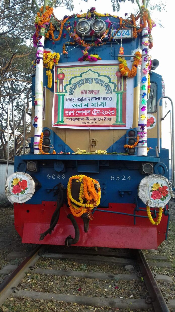 ওই ওরস শরীফ উপলক্ষে মঙ্গলবার রাতে আঞ্জুমান-ই-কাদেরীয়ার উদ্যোগে রাজবাড়ী থেকে ২৪টি বগিতে ১ হাজার ২৭৬ জন পুরুষ, ৮২৭ জন নারী, ৬০ জন শিশুসহ মোট ২ হাজার ১৬৩ জন ওরশ যাত্রী স্পেশাল ট্রেনে ভারতের পশ্চিমবঙ্গের মেদিনীপুরের উদ্দ্যেশে যাত্রা করে। এ ট্রেনটি যাত্রার পর ভারতের গেদে স্টেশনের বিপরীতে বাংলাদেশ সীমান্তের দর্শনা আন্তর্জাতিক রেলওয়ে স্টেশনে যাত্রা বিরতি করেন। এরপর ওরসগামী যাত্রীদের ইমিগ্রেশন ও কাষ্টমস সহ সকল কার্যক্রম সম্পন্ন শেষে ওরশের উদ্দ্যেশে বুধবার সকাল ৯ টা ৩৫ মিনিটে ট্রেনটি স্টেশন ত্যাগ করে। মেদিনীপুরে যাওয়ার জন্য আঞ্জুমান-ই-কাদেরীয়া বরাবর আবেদনের পর লটারির মাধ্যমে দুই হাজার ১৬৩ জনকে চূড়ান্ত করা হয়। প্রতি বছর রাজবাড়ী, ফরিদপুর, পাবনাসহ দেশের বিভিন্ন অঞ্চল থেকে ওরশ যাত্রীরা মেদিনীপুরে যায়। রাজবাড়ী আঞ্জুমান-ই-কাদেরীয়ার সাধারণ সম্পাদক মো. আব্দুল আজিজ কাদেরী খোকন গণমাধ্যমকে বলেন, সকল আনুষ্ঠানিকতা শেষে ভালোভাবে মেদিনীপুরের উদ্দেশ্যে ওরশ স্পেশাল ট্রেনটি ছেড়ে গেছে। সুত্রে জানা যায়, মঙ্গলবার রাত ১০টা ১১ মিনিটে রাজবাড়ি রেলওয়ে স্টেশন হতে মেদেনীপুরের উদ্দ্যেশে স্পেশাল ট্রেনটি যাত্রা করে। ট্রেনের যাত্রীদের নিরাপত্তায় রাজবাড়ী থেকে দর্শনা পর্যন্ত জিআরপি পুলিশ টিম স্পেশাল গার্ডে নিয়োজিত ছিল। উল্লেখ্য, বাংলাদেশ ও ভারত সরকার যৌথভাবে ১৯০২ সাল থেকে এই ওরশ স্পেশাল ট্রেনটি চলাচলের ব্যবস্থা করে আসছে। তবে করোনার কারণে ২০২১ ও ২০২২ সালে ওরশ স্পেশাল ট্রেন যায়নি।