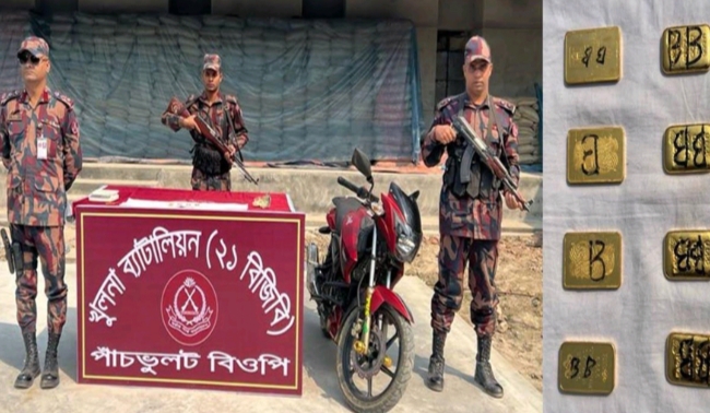 বিজিবি কর্তৃক ৮ পিস স্বর্নের বারসহ মোটর সাইকেল আটক