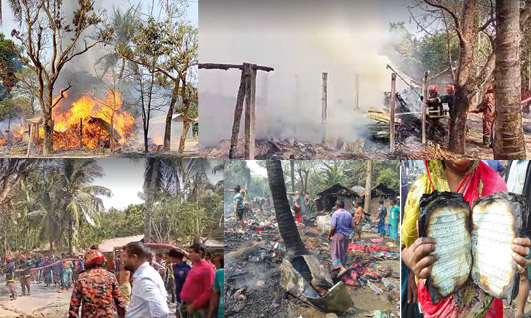 একটি বাড়ির মালিক হাসান আলী বলেন, “আমার ও আমার মামাতো ভাই রুবেলের ঘরে থাকা স্বর্ণালংকার, জমির দলিলপত্র, আইডিকার্ড, পোষাক, লেপকাথা, শরিষাসহ দুই পরিবারের মূল্যবান জিনিসপত্র সব পুড়ে ছাই হয়ে গেছে। এতে আমাদের নগদ তিন লাখ টাকাসহ অন্তত ১০ লাখ টাকার ক্ষয়ক্ষতি হয়েছে। এখন আমাদের পরনের কাপড় ছাড়া আর কিছুই রইলো না।”