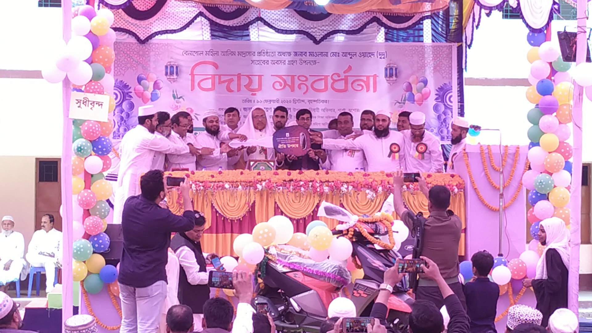 বৃহস্পতিবার (১৬ জানুয়ারি) মাদ্রাসার শিক্ষক পরিষদের উদ্যোগে সকাল ১০ টা থেকে দিনব্যাপী নানা আড়ম্বরপূর্ন আয়োজনের মধ্যে দিয়ে তাকে বিদায়ী সংবর্ধনা প্রদান করা হয়। বেনাপোল মহিলা আলিম মাদ্রাসা কমিটির সভাপতি মোঃ মহাতাব উদ্দিনের সভাপতিত্বে এবং মাওলানা মোঃ ইউছুপ আলীর সঞ্চালনায় বিদায় অনুষ্ঠানে প্রধান অতিথী হিসাবে উপস্থিত ছিলেন উপজেলা নির্বাহী কর্মকর্তা নারায়ণ চন্দ্র পাল। বিশেষ অতিথী হিসাবে উপস্থিত ছিলেন উপজেলা মাধ্যমিক শিক্ষা অফিসার হাফিজুর রহমান চৌধুরী। এছাড়া শার্শা উপজেলার বিভিন্ন মাদ্রাসা ও মাধ্যমিক বিদ্যালয়ের শিক্ষকরা উপস্থিত ছিলেন।
