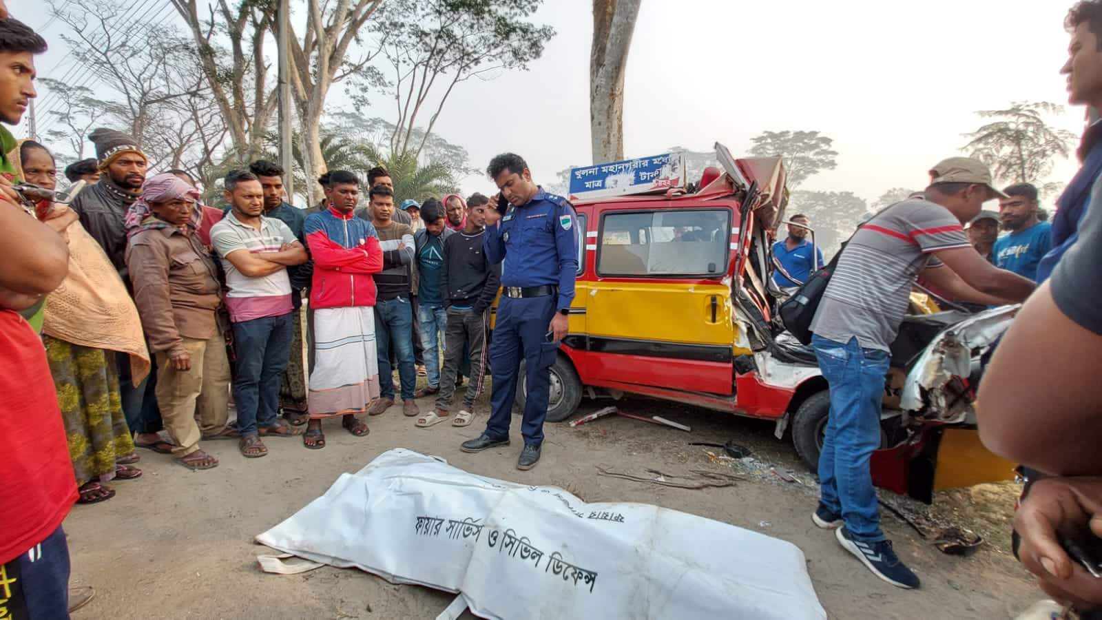 পুলিশ জানায়, চলতি সপ্তাহে মোংলা থেকে সন্তান সম্ভাবা এক নারীকে নিয়ে খুলনার আদ্ দ্বীন হাসপাতালে ভর্তি করেন আলতাপ তালুকদার। সেখানে বৃহস্পতিবার রাতে একটি মৃত কন্যা সন্তান প্রসব করে । অসুস্থ্য ওই নারীকে হাসপাতালে চিকিৎসাধীন রেখে সদ্য ভুমিষ্ট মৃত্যু শিশুর লাশ নিয়ে আদ্ দ্বীন হাসপাতালের এ্যাম্বোলেন্স নিয়ে মোংলা ফিড়ে আসতেছিল আলতাপ৷ শুক্রবার সকাল ৭টার দিকে বন্দরের শিল্প এলাকা পাওয়ার হাউজ মোড়ে এসে রাস্তার পাশে দাড়িয়ে থাকা একটি গ্যাসের সিলিন্ডারবাহী ট্রাকের পিছন থেকে ধাক্কা দেয় এ্যাম্বুলেন্সটিকে। এতে ঘটনাস্থলেই এ্যাম্বুলেন্স ড্রাইভার হারেজ মিয়া (৩৫) নিহত হয়৷ নিহত ড্রাইভার হারেজ মিয়া যশোর সদরের ভেকুটিয়া এলাকার খন্দকার আমির হোসেন মোল্লার ছেলে। তিনি খুলনার আদ দ্বীন হাসপাতালের অ্যাম্বুলেন্স চালাতেন এবং খুলনার বৈকালী এলাকায় বসবাস করতেন৷ দুর্ঘটনার সময় এ্যাম্বুলেন্সে থাকা দুই যাত্রী আলতাপ হাওলাদার ও তার বোন পপি বেগম আহত হয়। স্থানীয় ফায়ার সার্ভিস কর্মীরা তাদের উদ্ধার করে মোংলা বন্দর হাসপাতালে ভর্তি করেন। আর মৃত্যু শিশুর লাশ পরিবারের কাছে পাঠানো হয়েছে বলে জানায় ফায়ার সার্ভিস কর্মীরা৷
