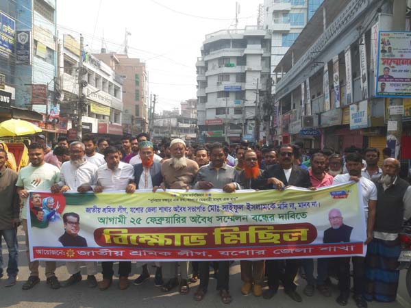 নিজস্ব প্রতিবেদক : আগামী ২৫ ফেব্রুয়ারির জাতীয় শ্রমিক লীগের যশোর জেলা শাখার সম্মেলন বন্ধের দাবিতে শহরে বিক্ষোভ মিছিল ও সমাবেশ করা হয়েছে। মিছিল থেকে সাইফুল ইসলামকে অবৈধ ভারপ্রাপ্ত সভাপতি উল্লেখ করে শ্লোগান দেয়া হয়।