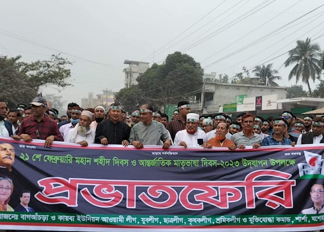 বাগআঁচড়া প্রতিনিধি।। : শার্শার বাগআঁচড়া বাজার যথাযোগ্য মর্যাদায় আন্তর্জাতিক মাতৃভাষা দিবস ও শহীদ দিবস পালিত হয়েছে। এ উপলক্ষে মঙ্গলবার সকালে একটি র্যালি বাগআঁচড়া বাজার প্রদক্ষিন শেষে বঙ্গবন্ধু ম্যুরালে এক আলোচনা সভা ও দোয়া মাহফিল অনুষ্ঠিত হয়।বাগআঁচড়া ইউনিয়ন আওয়ামীলীগের সভাপতি ইন্জিনিয়ার আবুল কালাম আজাদের সভাপতিত্বে আলোচনা সভা ও দোয়া মাহফিলে উপস্থিত ছিলেন, বাগআঁচড়া ইউনিয়ন আ.লীগের সাধারন সম্পাদক ইলিয়াছ কবির বকুল, যুগ্ন সাধারন সম্পাদক শাখয়াত হোসেন,কায়বা ইউনিয়ন আ.লীগের সভাপতি হাসান ফিরোজ আহম্মেদ টিংকু,সাধারন সম্পাদক শরিফুল ইসলাম,বাগআঁচড়া ইউনিয়ন যুবলীগের সাধারন সম্পাদক ইকবাল হাসান তুতুল প্রমুখ।
