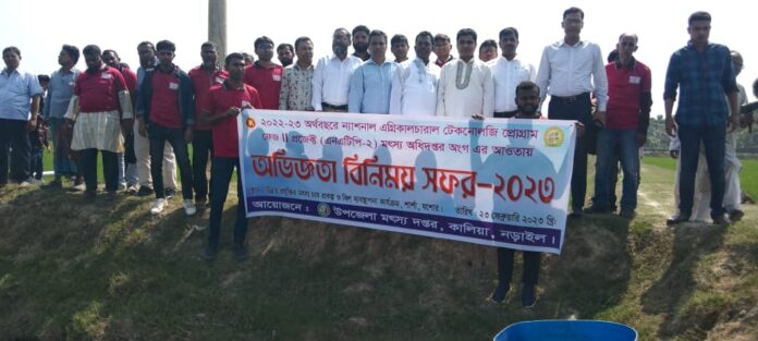 এ ছাড়াও নড়াইল জেলার কালিয়া উপজেলার এনএটিপি-২ আওতায় অভিজ্ঞতা বিনিময় কর্মশালার সুভলভোগী ৪০ জন মৎস্য চাষী সহ স্থানীয় মৎস্য চাষী সহ এলাকার গণ্যমাণ্য ব্যক্তিবর্গ উপস্থিত ছিলেন।