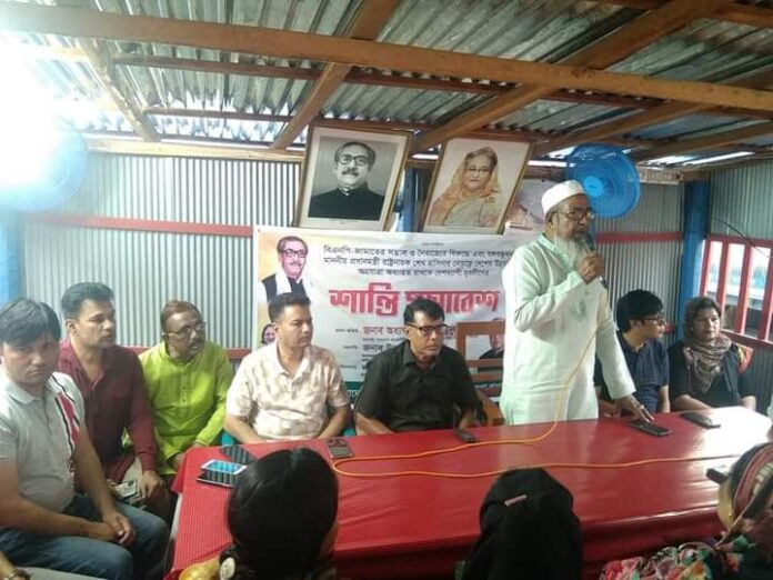 মণিরামপুরে যুবলীগের সভাপতি উত্তম চক্রবর্তী বাচ্চুর সভাপতিত্বে শান্তি সমাবেশ অনুষ্ঠিত হয়েছে। এতে প্রধান অতিথি হিসেবে উপস্থিত ছিলেন মনিরামপুর আওয়ামীলীগের সম্মানিত সভাপতি আলহাজ্ব অধ্যক্ষ কাজী মাহমুদুল হাসান , নেতারা বলেন ২০১৪ সালের মতো কোনো নৈরাজ্য সৃষ্টি করলে আওয়ামী যুবলীগ মনিরামপুরে দাঁতভাঙ্গা জবাব দেবে, বিএনপি ষড়যন্ত্রমূলক পথে হাঁটছে সরকার হটাতে। তারা কত ধ্বংসাত্মক কর্মকাণ্ড করে তা সবাই জানে। ষড়যন্ত্র ছাড়া বিএনপি রাজনীতি বোঝে না।
