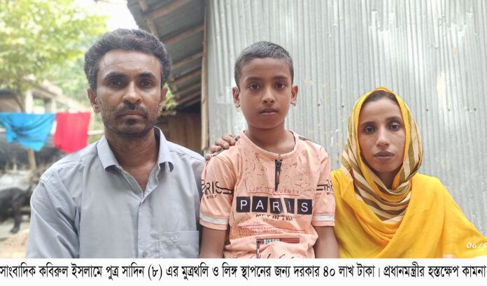 এ সময় তিনি জানান, সাদিনের মুত্রথলি ও স্পিøন্টার জরুরী ভিত্তিতে স্থাপন করতে হবে। যার ব্যয় প্রায় ৪০ লাখ টাকা। জরুরী ভিত্তিতে অপারেশন করা না হলে শিশু সাদিনের জীবন ঝুঁকিপূর্ণ হয়ে উঠবে। ওর জীবন হবে দুর্বিষহ। ডাক্তারের পরামর্শ জেনে অসহায় হয়ে পড়েছেন সাংবাদিক পরিবার। দিশেহারা তারা। কি করবেন ভেবে পাচ্ছেন না। দেড় দশক গণমাধ্যমে কাজ করে দেশ ও মানুষের কথা লিখেছেন সাধিনের পিতা কবিরুল ইসলাম। শেষমেষ তার আশা ভরাসার ঠিকানা গণমাধ্যম। আর সেই গণমাধ্যমেই তিনি সন্তানের চিকিৎসার জন্য প্রধানমন্ত্রী শেখ হাসিনার আশু হস্তক্ষেপ কামনা করেছেন। এছাড়া বিত্তবানরা সহযোগিতার হাত বাড়াতে পারেন। যোগাযোগ-০১৯২৭-১৭২৫৩৫।