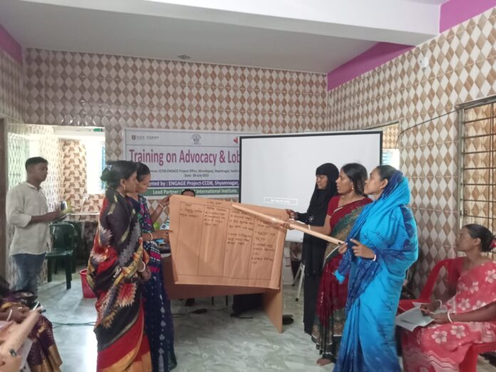 পরিতোষ কুমার বৈদ্য শ্যামনগর (সাতক্ষীরা) প্রতিনিধি : সিসিডিবি একটি উন্নয়ন ও সেবামুলক বেসরকারী সংস্থা। সংস্থাটি মানুষের উন্নয়নের লক্ষ্যে সেবামুলক কাজ করে চলেছে। সিসিডিবি-নগেজ প্রকল্প নারীদের উন্নয়নের লক্ষ্যে কাজ করছে।সেই লক্ষ্যে ৯ জুলাই ২০২৩ তারিখ সকাল ১০:০০ টায় শ্যামনগর উপজেলার মুন্সিগঞ্জে সিসিডিবি-এনগেজ প্রকল্প অফিসে প্রকল্পের নারী সদস্যদের নিয়ে এ্যাডভোকেসি ও লবি বিষয়ে প্রশিক্ষণের আয়োজন করা হয়। উক্ত অনুষ্ঠানের উপস্তিত ছিলেন এনগেজ প্রকল্পের প্রজেক্ট ম্যানেজার ফারিদা খাতুন। প্রশিক্ষক হিসেবে উপস্তিত ছিলেন পিসি আর সি বি প্রকল্পের উপজেলা সমন্বয়কারী সুজন বিশ্বাস ও এনগেজ প্রকল্পের প্রোগ্রাম অফিসার নিলীমা রাণী, প্রকল্পের অন্যান্য কর্মীবৃন্দ ও এনগেজ প্রকল্পের নারী সদস্যরা ।উক্ত অনুষ্ঠানে সভাপতিত্ব করেন এনগেজ প্রকল্পের প্রজেক্ট ম্যানেজার ফারিদা খাতুন।তিনি এ্যাডভোকেসি ও লবি, প্রশিক্ষণের সুফল ও প্রয়োজনীয়তা সর্ম্পকে আলোচনা করেন। তিনি নারীরা কিভাবে এ্যাডভোকেসি ও লবি করে নিজেদের ও সমাজের উন্নয়ন করা যায় সে বিষয়ে আলোচনা করেন।উক্ত প্রশিক্ষণে এ্যাডভোকেসি কি, সহিংসতার কারন ও প্রতিরোধে করনীয়, নারীর ক্ষমতায়নে এ্যাডভোকে পরিকল্পনা প্রনয়ন এবং নারীর অধিকার, নারী নেতৃত্ব ইত্যাদি বিষয়ে প্রশিক্ষণ প্রদান করা হয়।