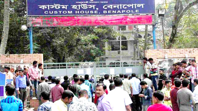 বেনাপোল স্থলবন্দরে অধিকাল ভাতা বন্ধ, কর্মচারীদের ব্যানার টানিয়ে প্রতিবাদ