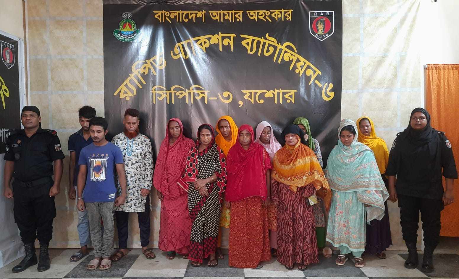 আটককৃত চোরাকারবারিরা হচ্ছে পাবনার সাথিয়া থানার নাগডেমরা গ্রামের সফির প্রামানিকের ছেলে মোঃ সরোয়ার হোসেন(৪৩), খুলনার সোনাডাঙ্গা মডেল থানার আরবপুর, গোরাপাড়া গ্রামের শুকুমার দাসের ছেলে শুভ দাস(২৫), সোনাডাঙ্গা মডেল থানার সোনাডাঙ্গা গ্রামের শুভ দাসের স্ত্রী টুম্পা দাস(২৩), যশোর শহরের ঘোপ নওয়াপাড়া এলাকার সবুজ হাওলাদারের স্ত্রী জোসনা খাতুন(৩২), রেলস্টেশন হরিজন কলোনীর মৃত রাম কুমার দাসের স্ত্রী রীনা রানী দাস(৪৮), ছেলে দিপু কুমার দাস(২৬), রেলগেট কলাবাগন পাড়ার আবু তাহেরের স্ত্রী সালমা বেগম(৫০), রেলগেট পশ্চিম পাড়ার মৃত সালাম হাওলাদারের মেয়ে ফুলি বেগম (৪২), শার্শা উপজেলার ভবেরবেড় মধ্যপাড়ার মৃত আলী হোসেনের মেয়ে শিল্পি বেগম(৪৮), আব্দুর নুর রিপনের স্ত্রী রুপালী খাতুন(৩২), নাজমুল হোসেনের স্ত্রী কুলসুম খাতুন(২৩), অভয়নগর উপজেলার নওয়াপাড়া গ্রামের হাশেম আলীর স্ত্রী লিলি বেগম(৪০)। র্্যাব-৬ যশোর ক্যাম্পের অধিনায়ক মেজর মোহাম্মদ সাকিব হোসেন জানান, গোপন সংবাদের ভিত্তিতে র্্যাবের একটি দল আজ সোমবার ভোরে রেলস্টেশন হরিজন পল্লীএলাকায় অভিযান পরিচালনা করে। এসময় ভারতীয় ২৪২ পিস বডি স্প্রে, ২ হাজার ১১ পিস ফেইস ওয়াস, ৯৪ পিস তেল, ১ হাজার ৬১৬ পিস শন পাপড়ী, ৫২০ পিস নেহা মেহেদী, ২৫২ পিস কোলগেট পেস্ট, ৬ হাজার ৮০ পিস বিভিন্ন ধরনের ক্রিম, ২০০ পিস ডাব সাবান , ৮১ পিস শ্যাম্পুসহ ১২জন চোরাকারবারিকে আটক করা হয়।
