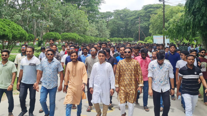 এসময় বিশ্ববিদ্যালয় শাখা ছাত্রলীগের সভাপতি ফয়সাল সিদ্দিকী আরাফাত ও সাধারণ সম্পাদক নাসিম আহমেদ জয়ের নেতৃত্বে উপস্থিত ছিলেন সহ-সভাপতি আল-মামুন, আরিফুল ইসলাম খান, মামুন অর রশিদ ও রকিবুল ইসলাম, যুগ্ম-সাধারণ সম্পাদক মুজাহিদুল ইসলাম ও হোসাইন মজুমদারসহ বিভিন্ন নেতাকর্মী।